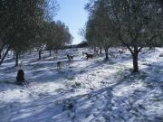 Die letzten Tage des Februar brachten uns Schnee und eine enorme Kaelte. -8°C massen wir und nichts ging mehr. Das Wasser war eingefroren. Dementsprechend stand die Heizung still, die Waschmaschinen streikten und die Tiere bekamen Mineralwasser. Nicht einmal das Haupttor zur Aussenwelt liess sich oeffnen.